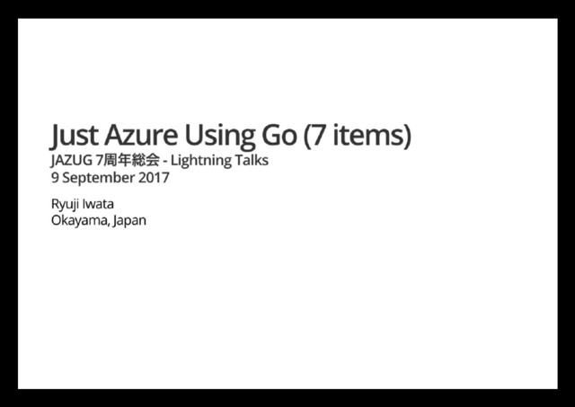 2017年9月9日(土)に東京で開催の「JAZUG 7周年総会」にLT枠で申し込みましたが事情により不参加に(T_T) 記録として&お役に立てるかと、用意していた発表資料「Just Azure Using Go」を公開させて頂きます。