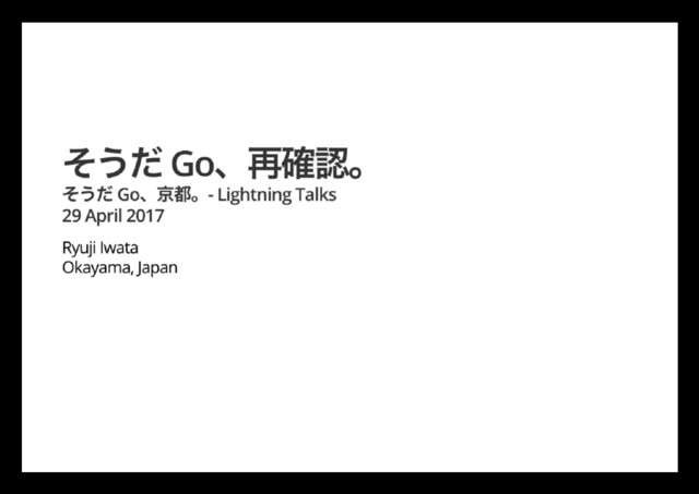 2017年4月29日(土)に京都で開催された「そうだ Go、京都」での私のLT発表資料「そうだ Go、再確認」です。知っている人は知っているGoを書く上での注意点を再度簡単にご紹介させて頂きました。