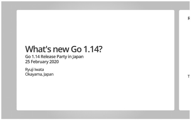 2/25(火)にオンラインで開催された「Go 1.14 Release Party in Japan」での私の発表資料「What's new Go 1.14?」です。Go 1.14 Release Notes(ドラフト版)ベースの内容です。オリジナルURL:https://talks.godoc.org/github.com/qt-luigi/talks/2020/whats-new-go-114.slide