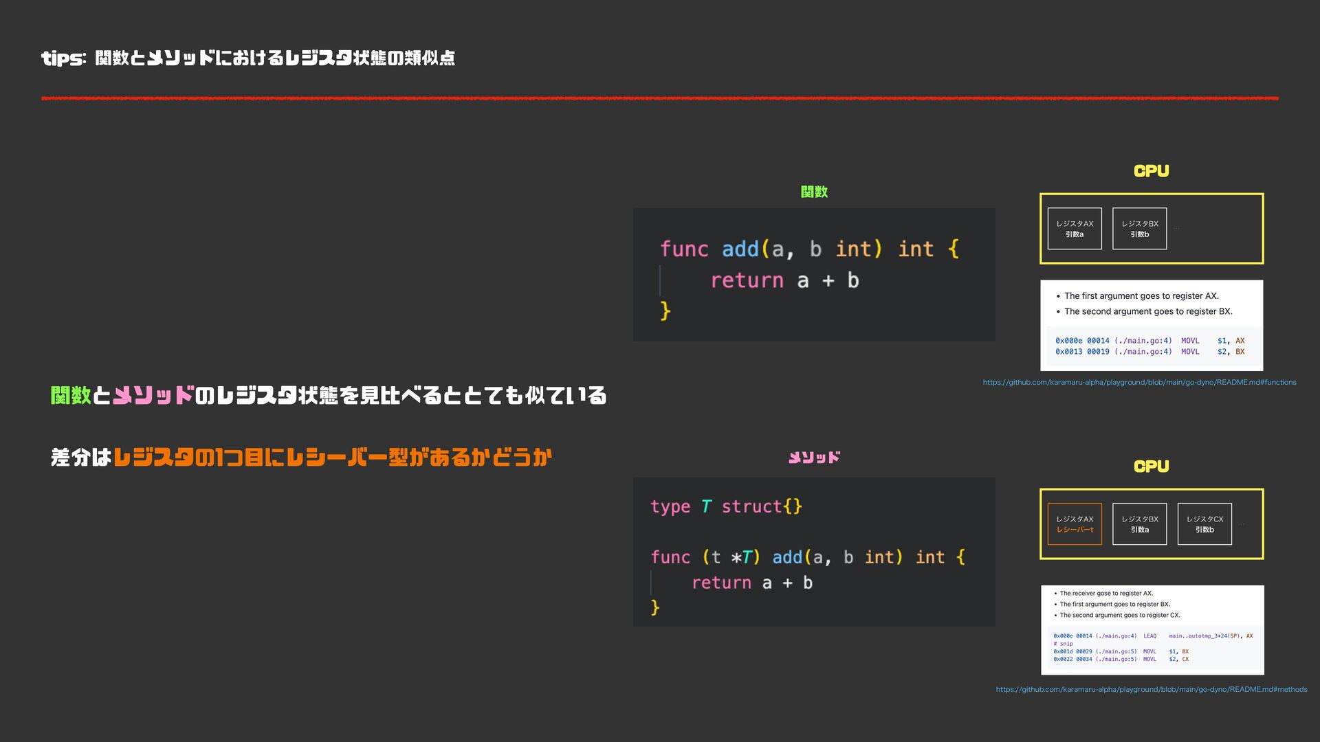 4. UJQTؔ਺ͱϝιουʹ͓͚ΔϨδελঢ়ଶͷྨࣅ఺ ʜ ؔ਺ͱϝιουͷϨδελঢ়ଶΛݟൺ΂Δͱͱͯ΋ࣅ͍ͯΔ ࠩ෼͸Ϩδελͷͭ໨ʹϨγʔόʔܕ͕͋Δ͔Ͳ͏͔ $16 Ϩδελ"9 Ҿ਺B Ϩδελ#9 Ҿ਺C ʜ