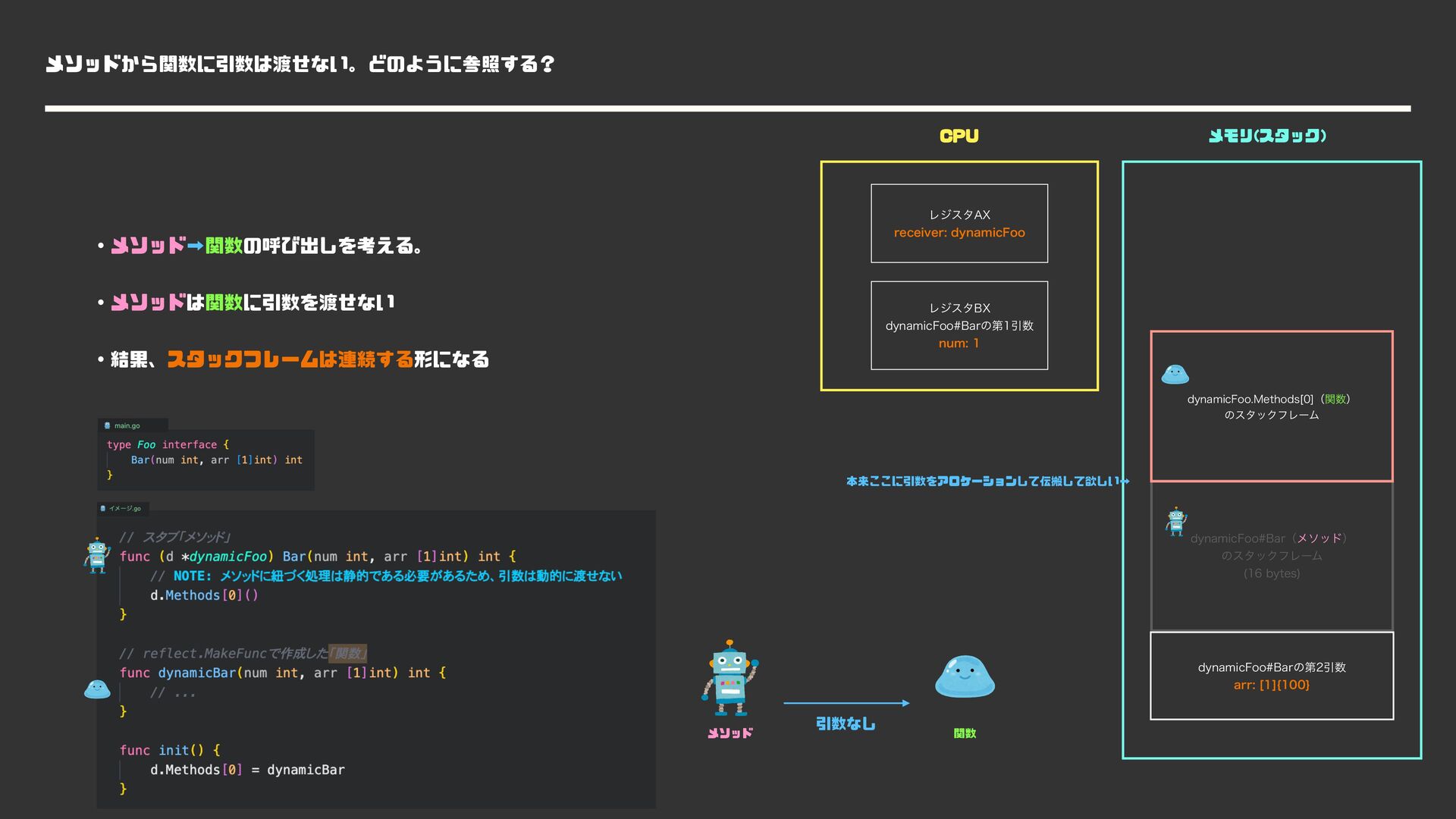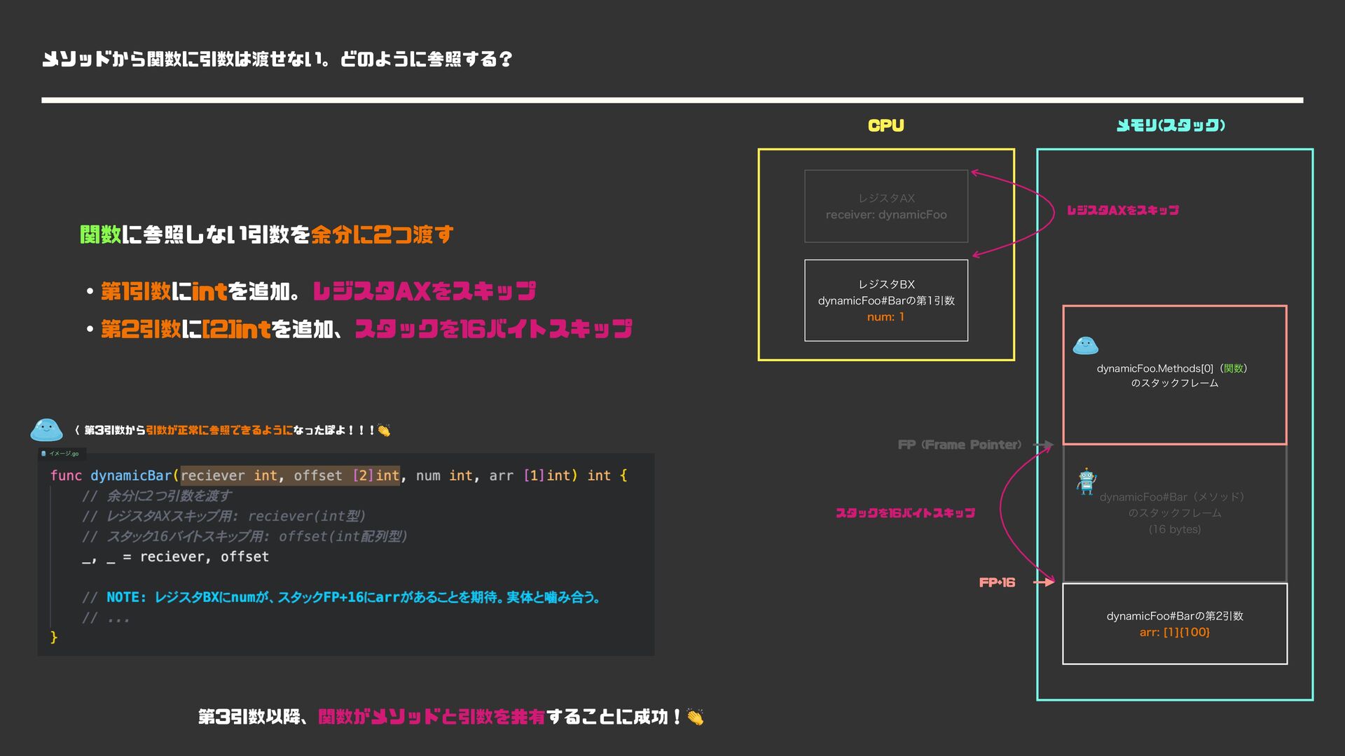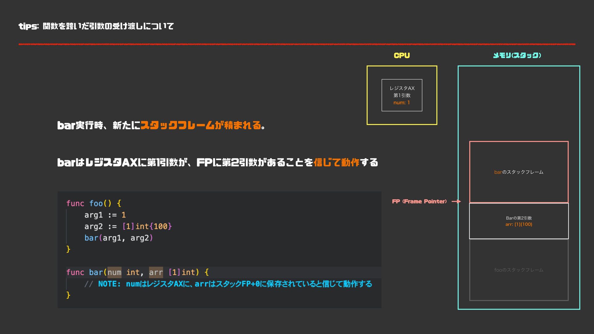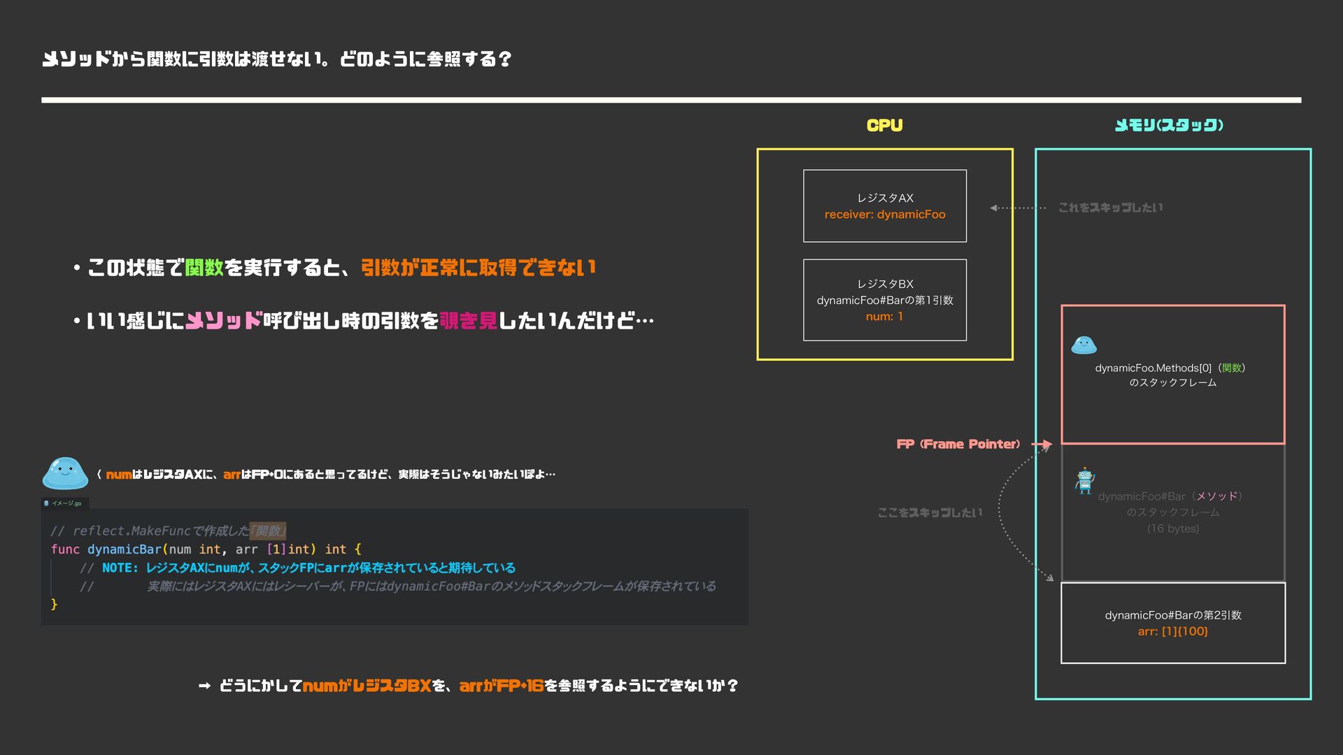 '1 'SBNF1PJOUFS ˠͲ͏ʹ͔ͯ͠OVN͕Ϩδελ#9ΛɺBSS͕'1 Λࢀর͢ΔΑ͏ʹͰ͖ͳ͍͔ʁ ͜ΕΛεΩοϓ͍ͨ͠ ͜͜ΛεΩοϓ͍ͨ͠ ϝϞϦ ελοΫʣ Ϩδελ#9 EZOBNJD'PP#BSͷୈҾ਺ OVN Ϩδελ"9 SFDFJWFSEZOBNJD'PP OVN͸Ϩδελ"9ʹɺBSS͸'1 ʹ͋ΔͱࢥͬͯΔ͚Ͳɺ࣮ࡍ͸ͦ͏͡Όͳ͍Έ͍ͨΆΑʜ ϝιου͔Βؔ਺ʹҾ਺͸౉ͤͳ͍ɻͲͷΑ͏ʹࢀর͢Δʁ
