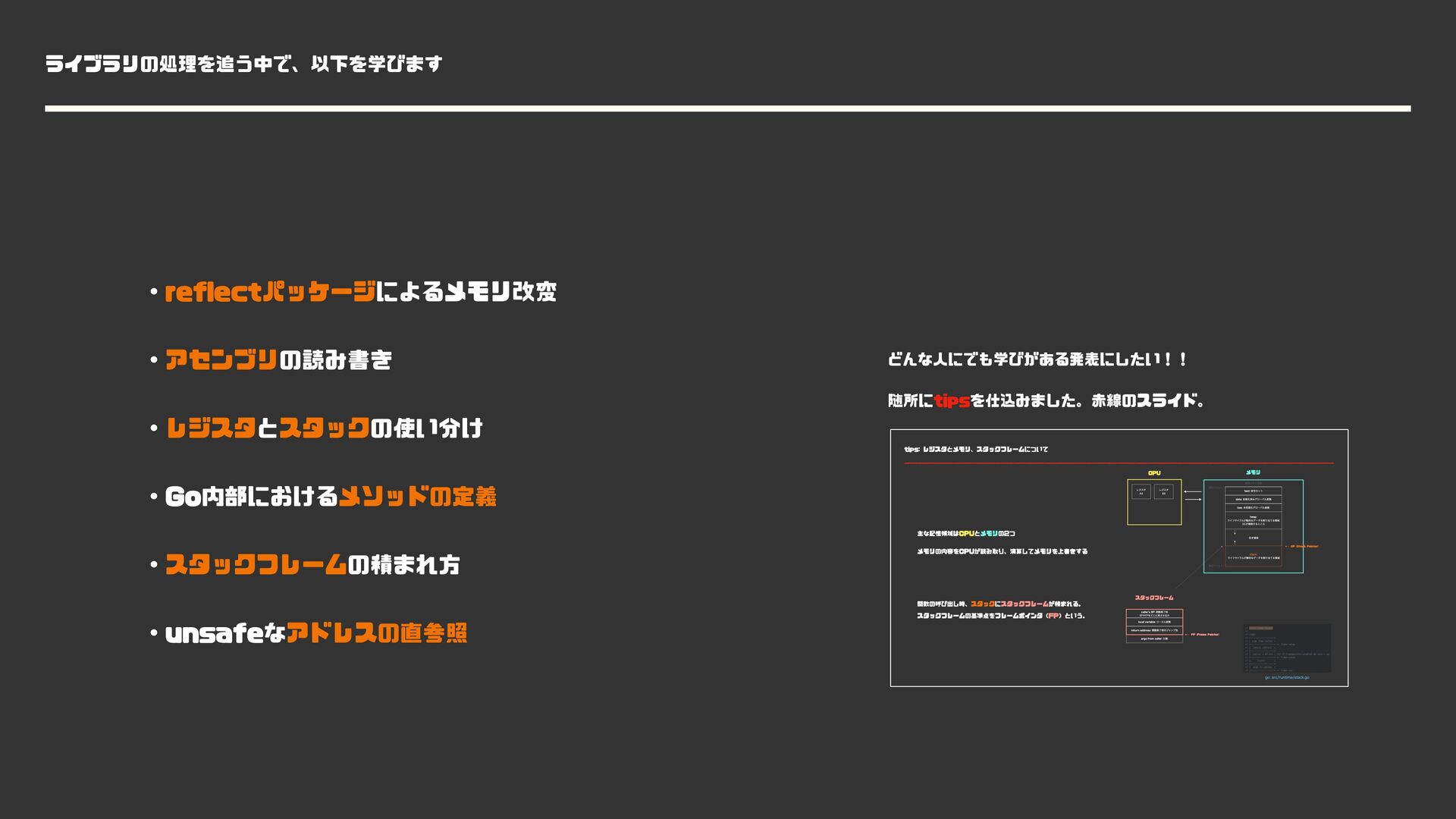 Goのランタイムの理解を深めたい方やモックライブラリ開発に興味がある方にとって、このセッションが有益な情報となれば幸いです。