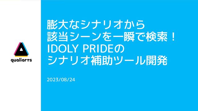 本セッションでは、弊社開発のスマートフォンゲーム「IDOLY PRIDE」で利用しているシナリオチーム向け補助ツールとその開発手法についてご紹介します。