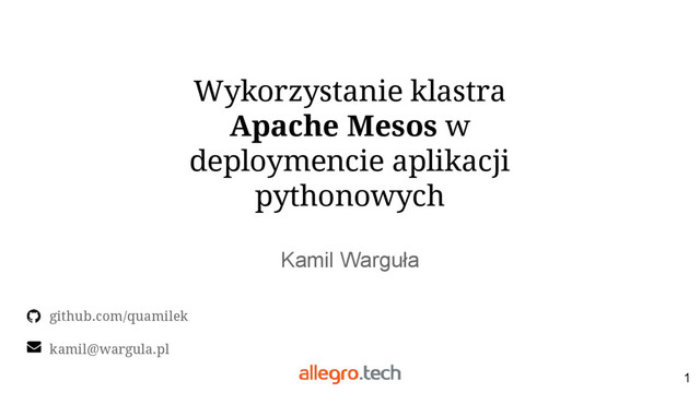Wykorzystanie klastra Apache Mesos w deploymencie aplikacji pythonowych Kamil Warguła