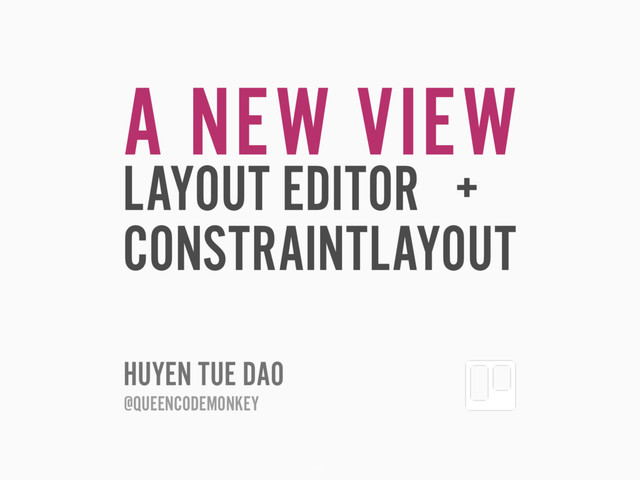 Huyen's talk from Droidcon London 2016, where she discusses the new ConstraintLayout and its complementary UI Builder in the Layout Editor. She gives an overview of the various ways of creating constraints and the tools available in the UI Builder for full utilizing the ConstraintLayout.