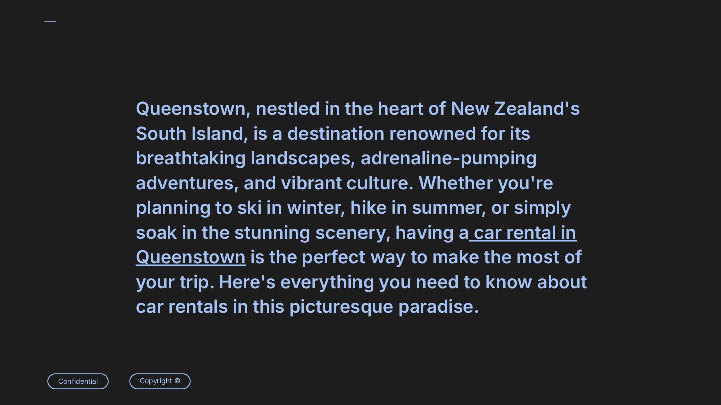 Zealand's South Island, is a destination renowned for its breathtaking landscapes, adrenaline-pumping adventures, and vibrant culture. Whether you're planning to ski in winter, hike in summer, or simply soak in the stunning scenery, having a car rental in Queenstown is the perfect way to make the most of your trip. Here's everything you need to know about car rentals in this picturesque paradise.