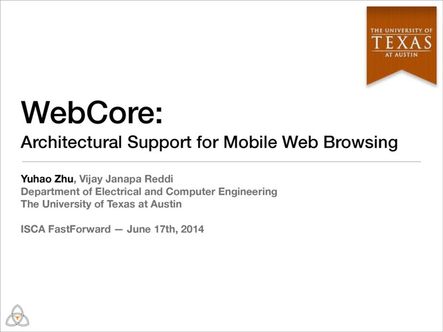 WebCore: Architectural Support for Mobile Web Browsing Yuhao Zhu, Vijay