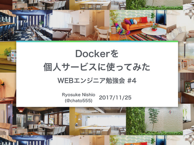 WEBエンジニア勉強会 #04の登壇資料です。 膨れ上がるインフラ費用をなんとかしたい、もっと手軽に環境を作りたいなど個人サービスを題材にどんな課題があったか、それを解決するための1手段としてDockerを使ってみたことについてお話しました。