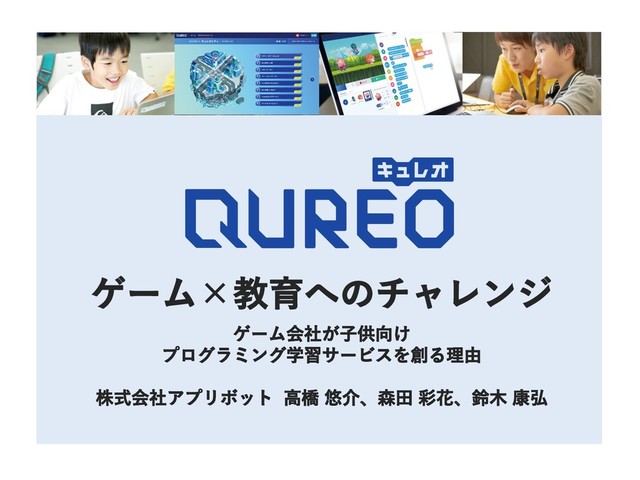 「ジョーカー〜ギャングロード〜」や「グリモア〜私立グリモワール魔法学園〜」等のスマートフォンゲームを開発・運営するアプリボットは、子供向けオンラインプログラミング学習サービス「QUREO」を2018年2月19日にリリースしました。