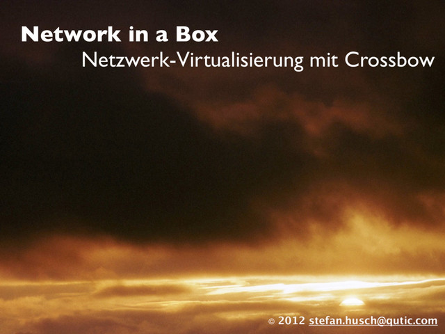 Möllenkamp) ‣ In OpenSolaris seit Build 105 ‣ Missing Link: Crossbow komplettiert die Virtualisierung (Build for Clouds) ‣ Network Virtualization: Virtual Nics, Switches (dladm) ‣ Resource Control: QoS for Zones and Services (flowadm) ‣ Security: Abgegrenzte IP-Stacks (no snoop) Crossbow - Network in a Box Beschreibung