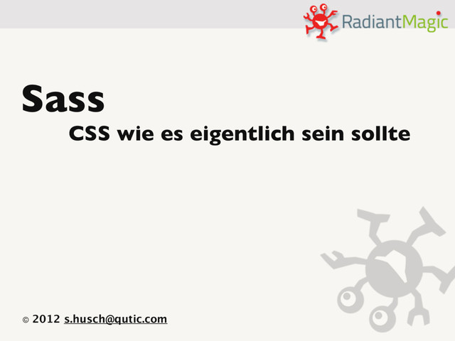 Sass ist ein CSS Präprozessor, der Sass zu CSS ‚kompiliert‘ ‣ Folgt dem DRY Prinzip von Ruby On Rails - Don't repeat yourself ‣ Bestandteil der Rails 3 Asset Pipeline ‣ Fazit: Sass ist CSS wie es eigentlich sein sollte