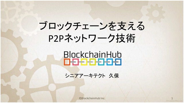P2Pネットワーク技術 インターネット技術 パケット交換技術 ©BlockchainHub Inc. インターネット上に特定の サーバなしにサービスを 構築するための基盤技術