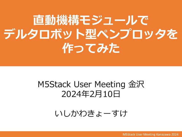 M5Stack User Meeting Kanazawa 2024 直動機構モジュールで デルタロボット型ペンプロッタを 作ってみた M5Stack User