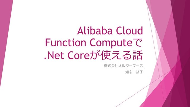 Alibaba Cloud Function Computeで .Net Coreが使える話 株式会社オルターブース 知念 裕子