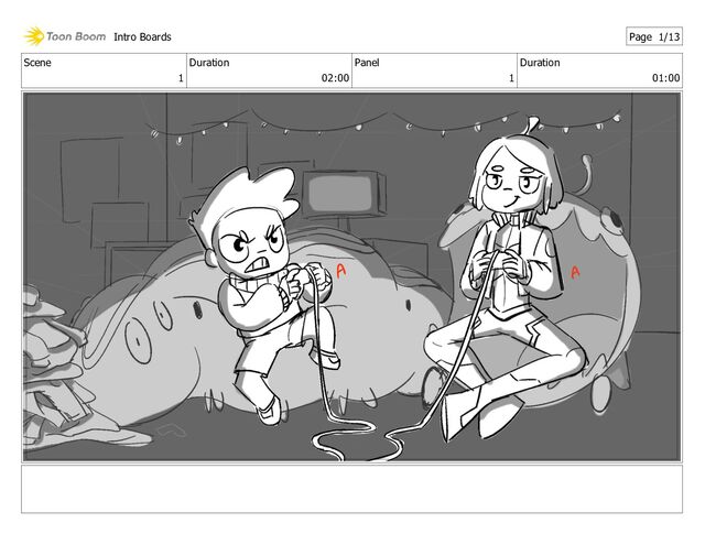 Scene 2 Duration 05:00 Panel 4 Duration 01:00 Intro Boards
