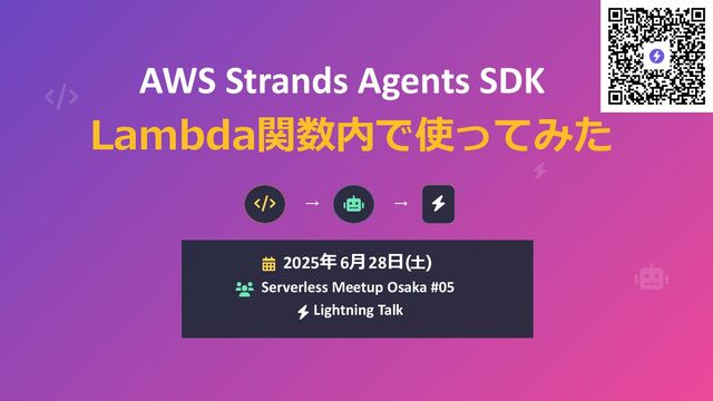 AWS Strands Agents SDK Lambda関数内で使ってみた → → 2025年 6⽉28⽇(⼟) Serverless