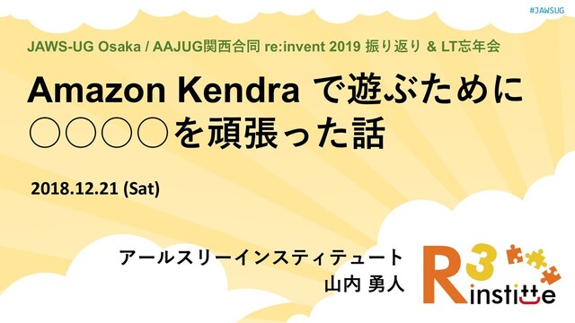 re:invent 2019 振り返り & LT忘年会 アールスリーインスティテュート ⼭内 勇⼈ 2018.12.21 (Sat)