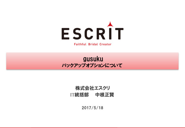 gusuku バックアップオプションについて 株式会社エスクリ 2017/5/18 IT統括部 中根正賢
