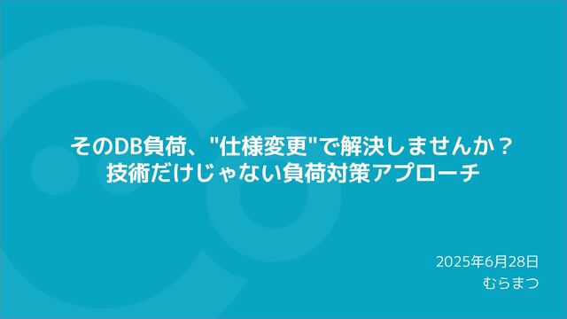 2025年6月28日 むらまつ そのDB負荷、"仕様変更"で解決しませんか? 技術だけじゃない負荷対策アプローチ