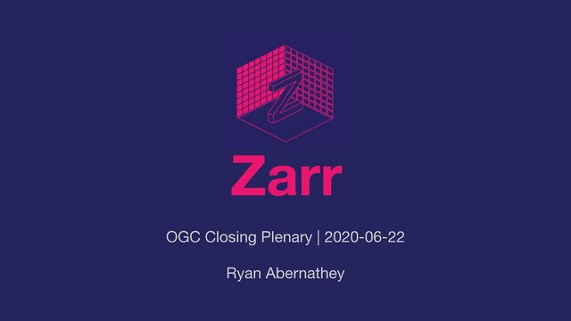 of Zarr V2 spec as an OGC Community Standard: “Community Standard serves to bring de facto standards from the larger geospatial community to be a stable reference point that can normatively referenced by governments and other organizations.” • Zarr is generic (comparable to HDF5) but can serve as a base format for other OGC standards, e.g. web coverage service. • Unidata will soon release a version of NetCDF with support for Zarr as an underlying storage container. • Zarr project received and EOSS Grant from the Chan Zuckerberg Institute to support development of V3 spec. Get involved @ zarr-developers/zarr-specs/