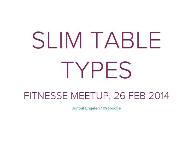 SLIM TABLE TYPES FITNESSE MEETUP, 26 FEB 2014 / Arnout