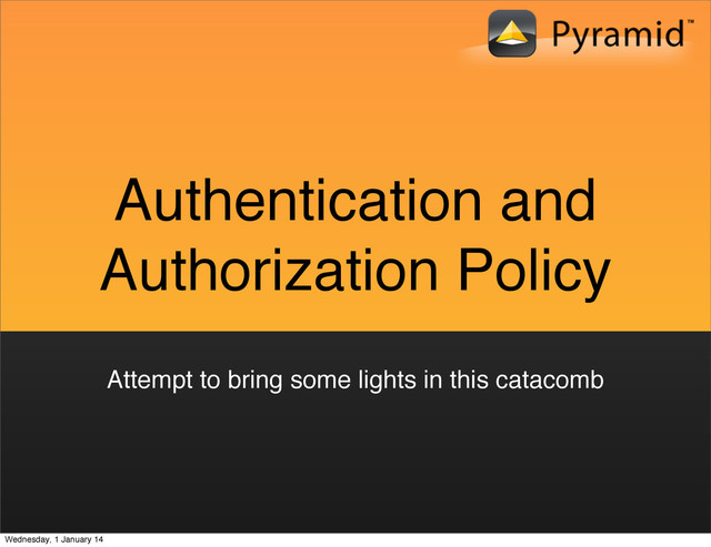 is a sequence of ACE tuples - ACE : Access control entry a three-tuple that describes three things: an action (Allow or Deny), a principal (a string describing a user or group), and a permission __acl__ = [ (Allow, 'fred', 'view'), (Allow, 'henry', 'view') ] (Allow, 'fred', 'view') Wednesday, 1 January 14