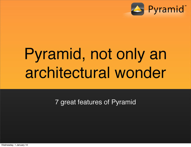 a Template. The view needs to return a dict to populate the context renderer='templates/home.pt' renderer='package:templates/home.mak' renderer='home.jinja2' Wednesday, 1 January 14