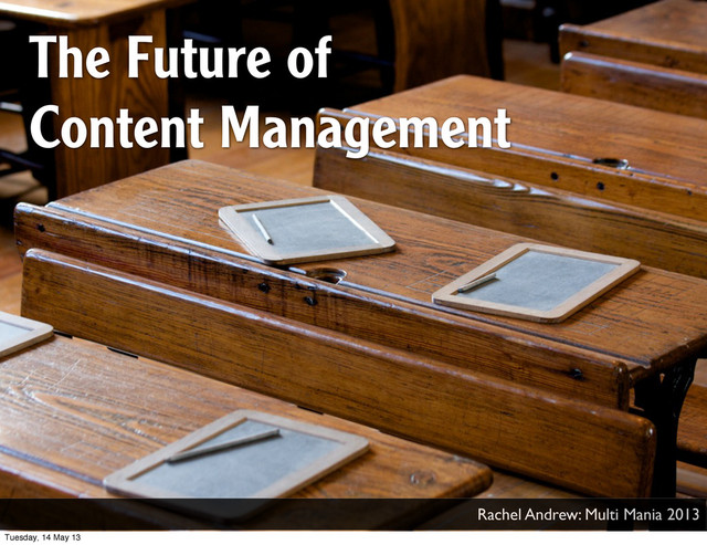 publishing content onto a million different new devices and formats and platforms, we need interfaces that will help guide content creators on how to write and structure their content for reuse.” Tuesday, 14 May 13
