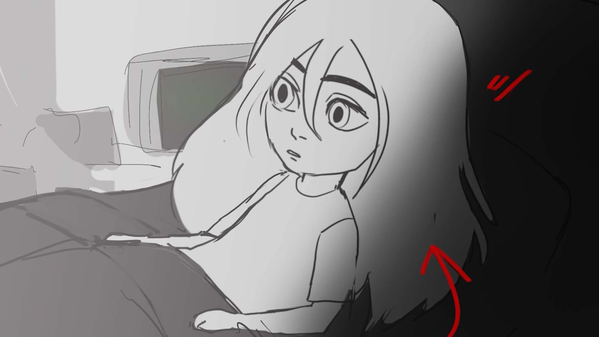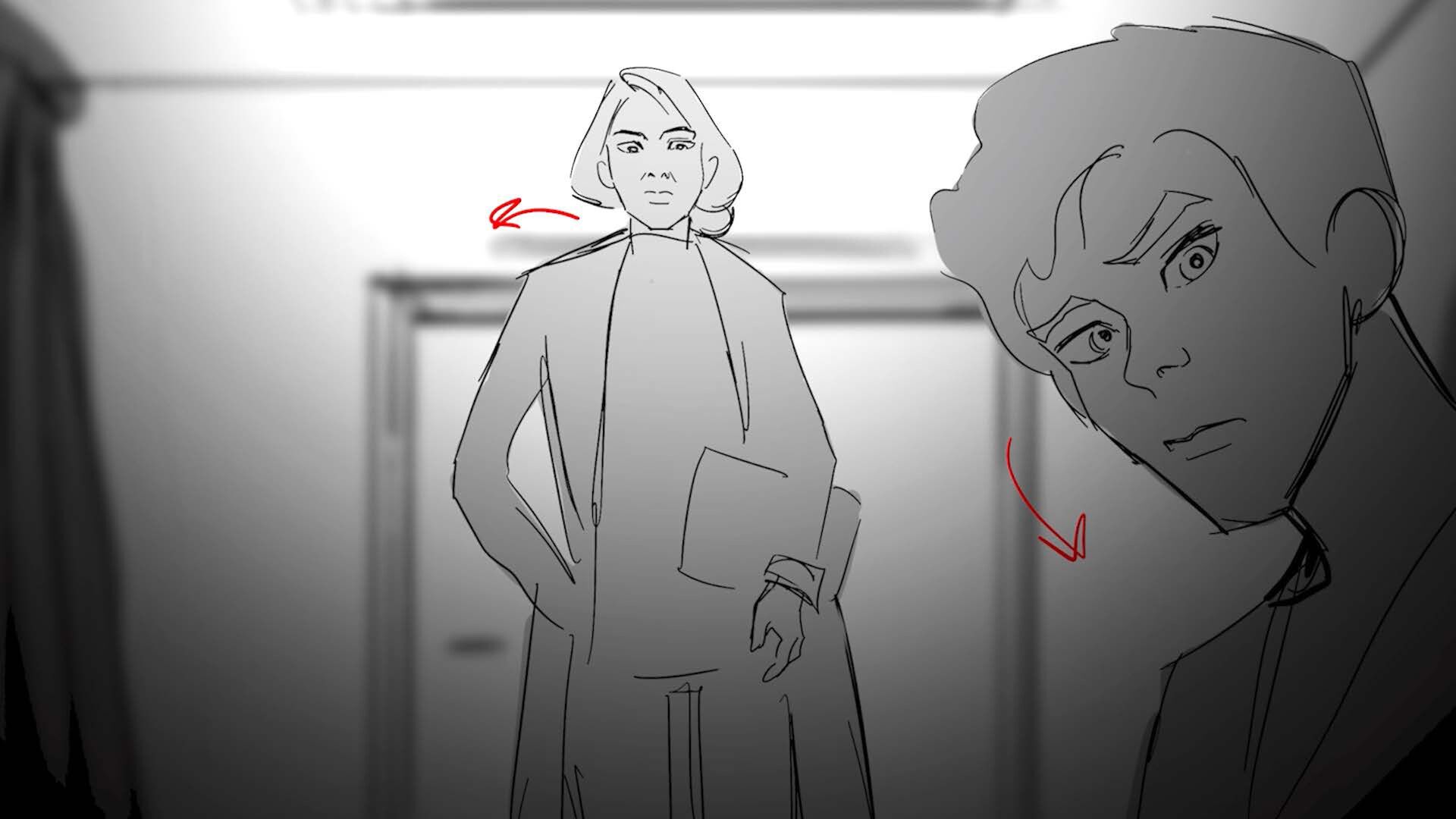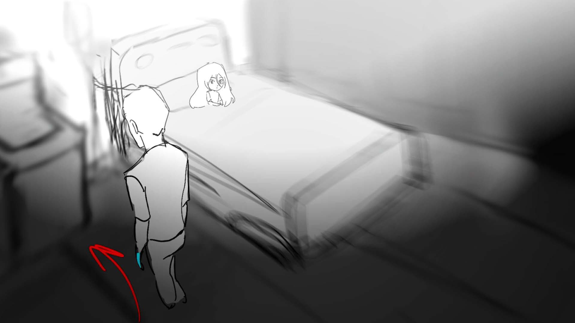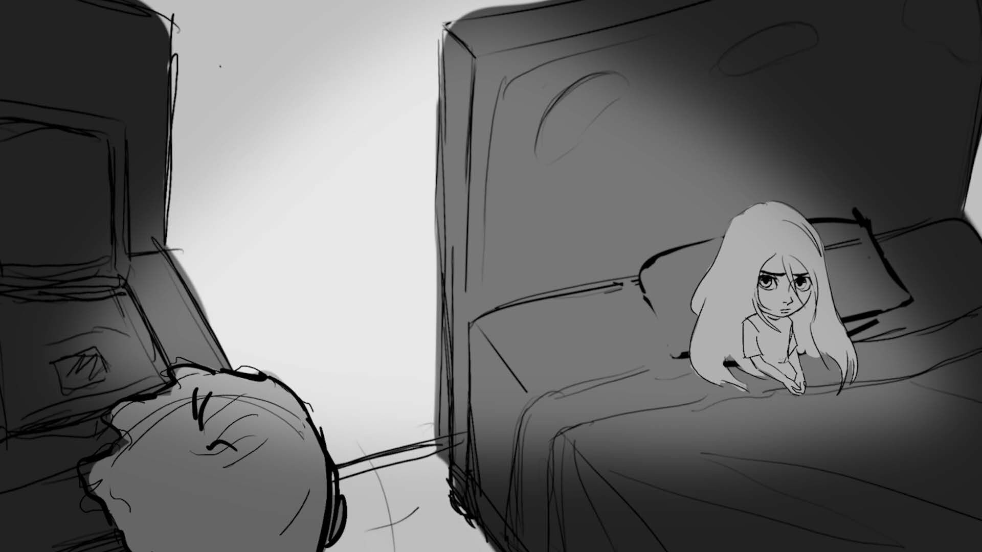 Storyboards for thesis film "You and Me" (completed in 2025). Variation in character design due to course iteration over time.