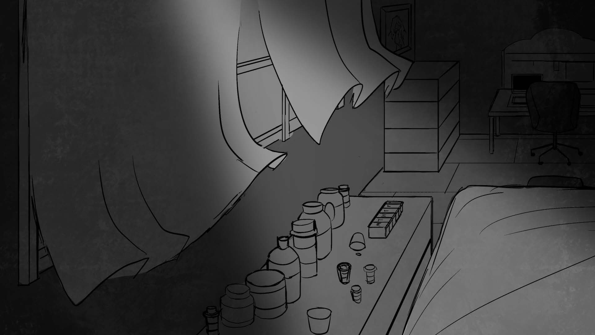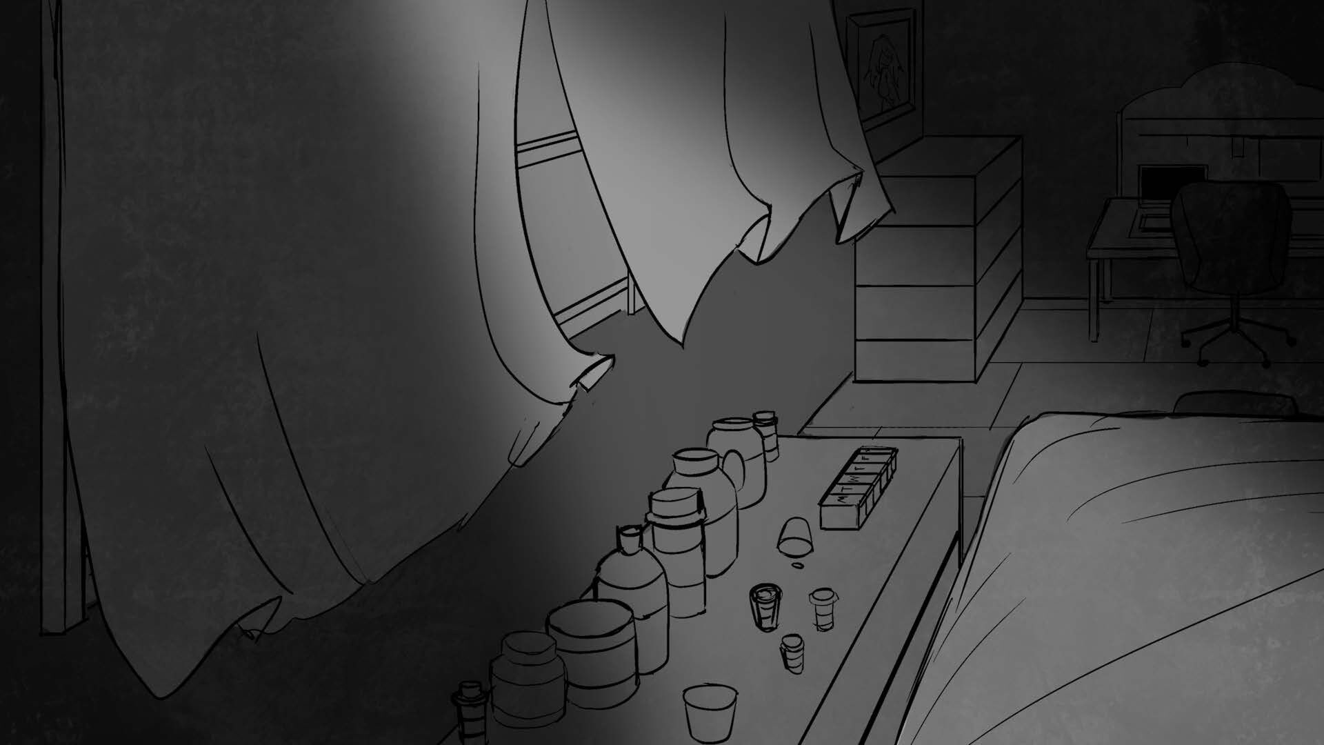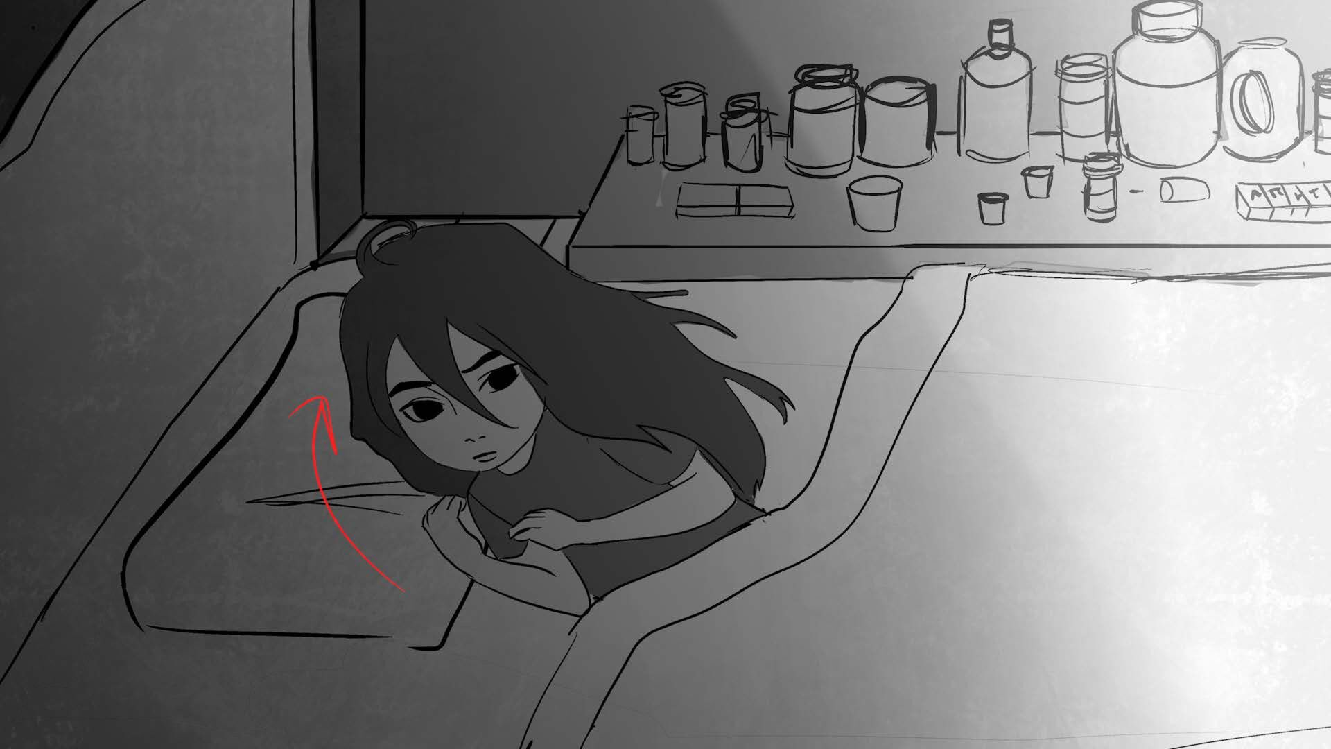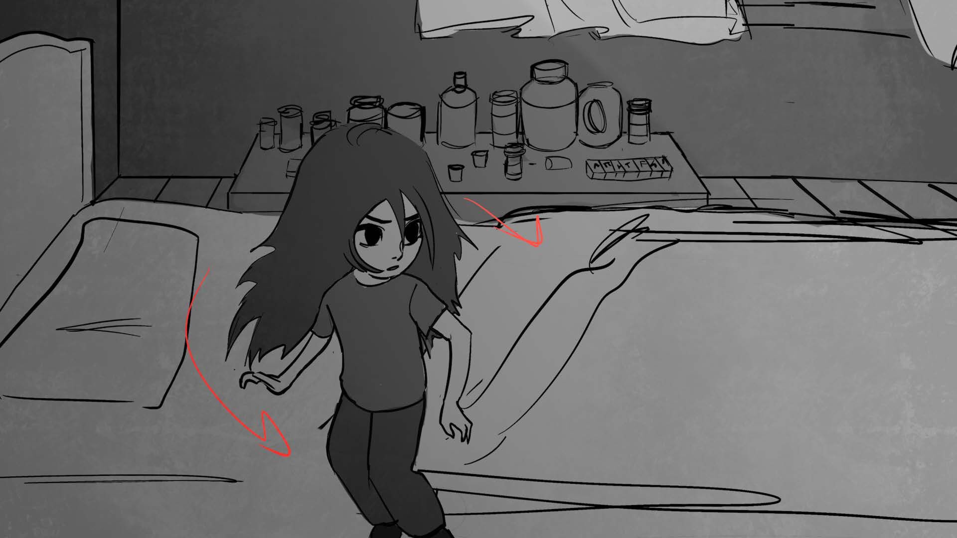 Storyboards for thesis film "You and Me" (completed in 2025). Variation in character design due to course iteration over time.