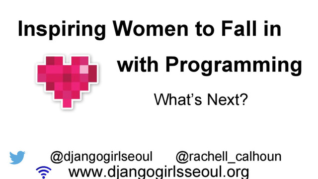 By 2020 7 million jobs will disappear due to robotics and smart technology and only 2 million will be replaced with new jobs. This disproportionately affects women. In this talk I discuss why this is a problem and possible ways to combat it. Django Girls is an initiative to inspire more women to fall in love with programming and has been very successful. I want to exam how we can support and guide the women that are inspired by the Django Girls workshops with looking at 'What's Next?". Django Girls Seoul has started a code camp curriculum to go back to the basics with Python, Django, HTML, CSS and Git. We're always looking for contributions to help our community grow!