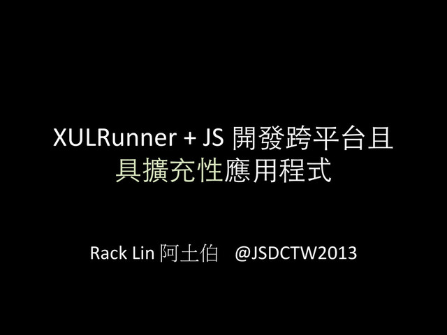 – overlay chrome://a/content/a.xul chrome://b/ content/b.xul • UI overlays – Like: $(‘#id’).arer(<html>) , $(‘#id’).before(<html>) – 發生在 DOMContentLoaded Event Trigger 之前 • Scripts Hook – Javascript Script tag 也能 overlay , 所以我們可以於 Extensions 插入 js 至現有程式中。