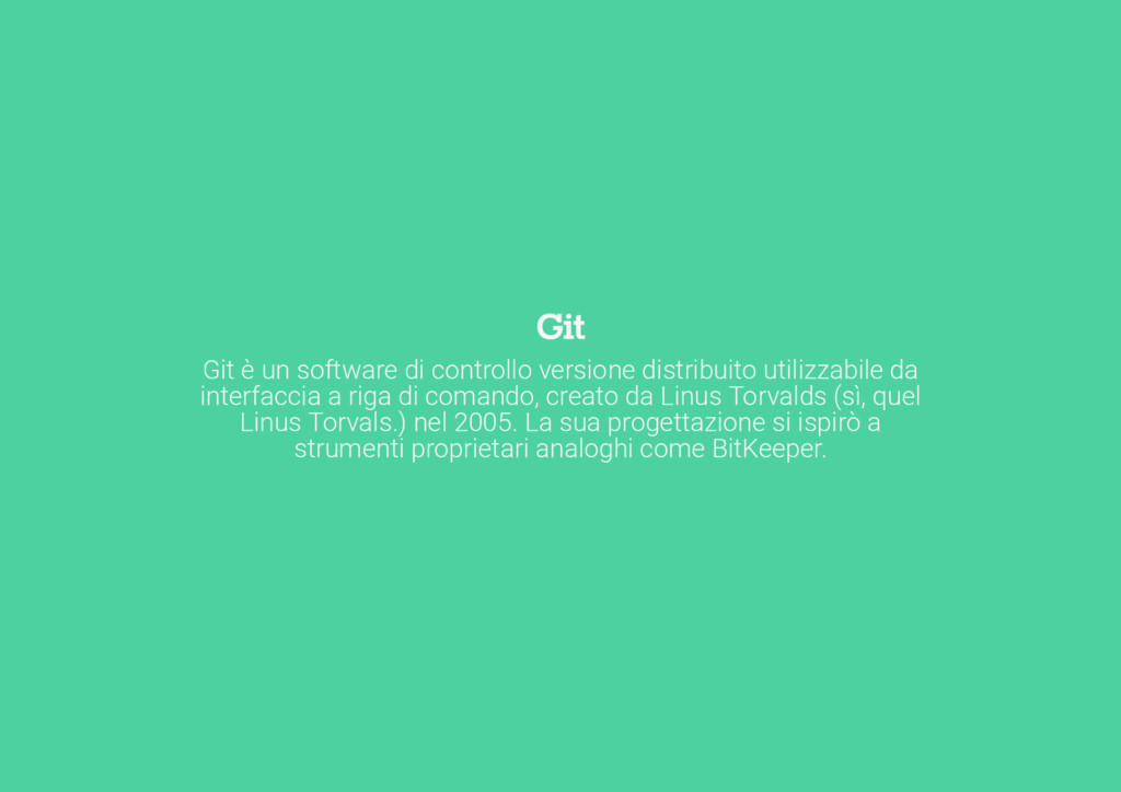 da interfaccia a riga di comando, creato da Linus Torvalds (sì, quel Linus Torvals.) nel 2005. La sua progettazione si ispirò a strumenti proprietari analoghi come BitKeeper.