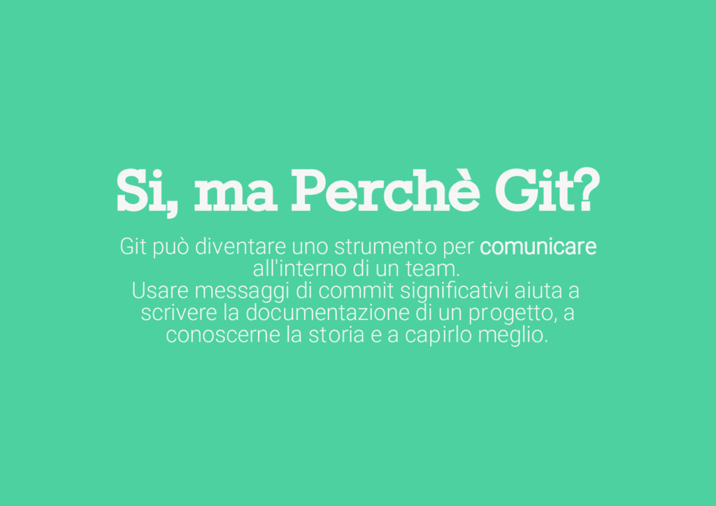 team. Usare messaggi di commit significativi aiuta a scrivere la documentazione di un progetto, a conoscerne la storia e a capirlo meglio. Si, ma Perchè Git?
