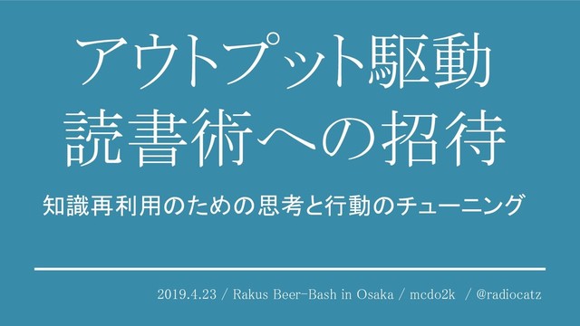 アウトプット駆動読書術に関するLT資料の第1弾です。 第2弾は↓ https://speakerdeck.com/radiocat/the-output-driven-reading-techniques-2