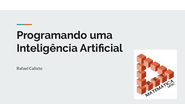 Palestra apresentada no PET Matemática da UFSC. Nesta palestra são apresentados conceitos básicos sobre inteligência artificias e suas principais técnicas. Também é apresentado um exemplo prático utilizando o algoritmo KNN para classificar o conhecido dataset Íris