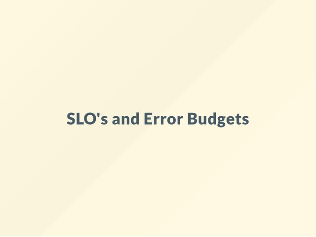 Availability SLIs over the previous 4 weeks sum(rate(http_requests_total{service=~"my- service", status=~"5.*"}[4w])) / sum(rate(http_requests_total{service=~"my- service"}[4w])) More about Aggregate Availability