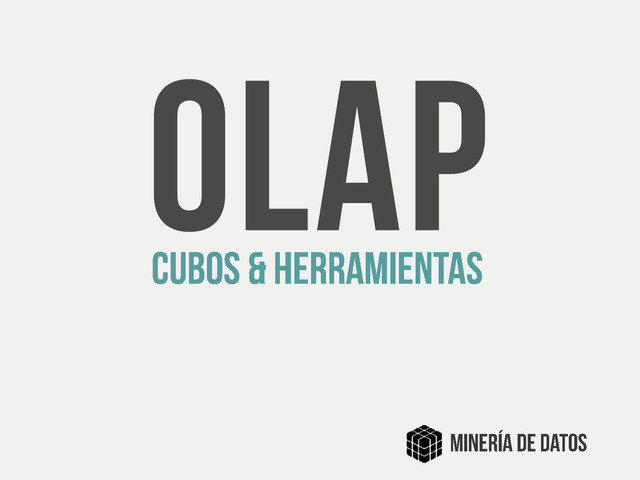 base de datos relacional. MOLAP •Los datos son replicados en plataformas con un almacenamiento construido a propósito que asegura mayor velocidad en los análisis. HOLAP •Plataformas que usan una combinación de varias técnicas de almacenamiento. DOLAP •Generan una pequeña cache multidimensional cuando los usuarios ejecutan las consultas contra la base de datos.