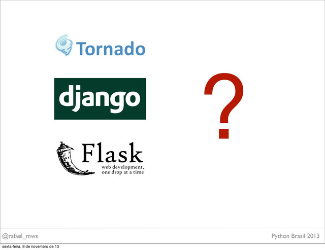 • Focuses on automating as much as possible and adhering to the DRY principle. • Django is a high-level Python Web framework • It lets you build high-performing, elegant Web applications quickly. sexta-feira, 8 de novembro de 13
