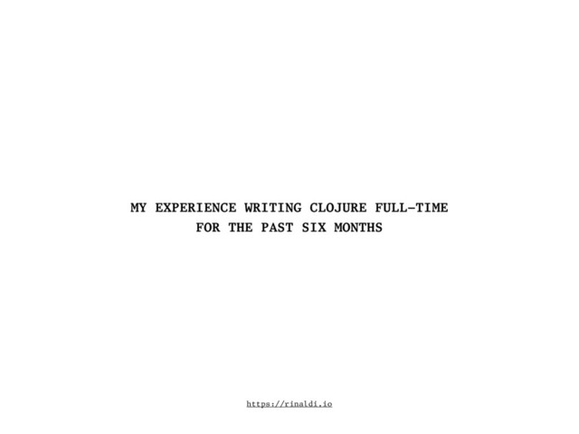 The idea was to share with the Clojure community the details of my experience of writing Clojure full-time at Work & Co for six months straight.