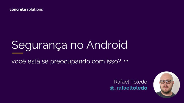 cj. 2121 Centro – (21) 2240-2030 São Paulo - Av. Nações Unidas, 11.541 3º andar - Brooklin - (11) 4119-0449 Ajudamos empresas a criar produtos digitais de sucesso Rafael Toledo @_rafaeltoledo github.com/rafaeltoledo/android-security