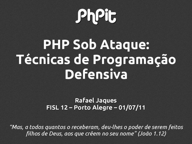Palestra apresentada por Rafael Jaques no FISL 12 [Porto Alegre] em 01/07/2011.