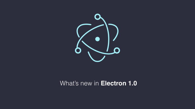 theme colour - New organization at Github named after Electron - New web site for Electon - Electron community - http://electron.atom.io/release - Standardize APIs - More and more native APIs - Behave consistently on each platform - Lots of “Little” things