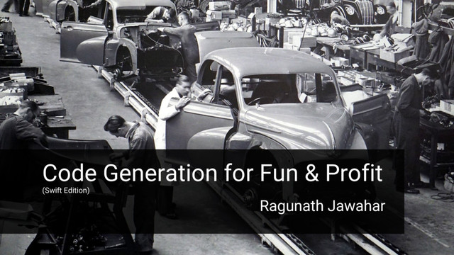 Code Generation for Fun & Profit (Swift Edition) Ragunath Jawahar