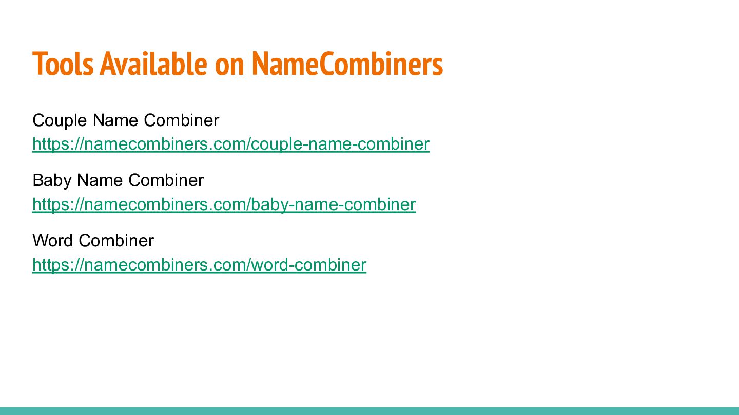designed to generate creative name combinations instantly. Main platform: https://namecombiners.com These tools help users quickly generate new names by mixing letters, syllables, and sounds.