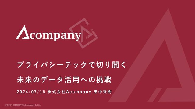 委託先での持ち出しや不正アクセス等のサプライチェーンリスクに有⽤ ⽒名 年 齢 住所 ⾝⻑ 職業 家族構成 性別 ⼭⽥ 太郎 40 東京都新宿区 158 エンジニア 独⾝ 男性 鈴⽊ 次郎 23 神奈川県横浜市 169 教師 既婚 男性 ⽥中 花⼦ 59 千葉県千葉市 153 看護師 独⾝ ⼥性 ⼩林 健太 54 埼⽟県さいたま 市 174 会社員 既婚・⼦供あ り 男性 佐藤 由紀 41 東京都港区 188 デザイナー 独⾝ ⼥性 中村 美樹 45 神奈川県川崎市 167 営業 既婚 ⼥性 ⼯藤 翔太 56 千葉県船橋市 159 医者 既婚・⼦供あ り 男性 藤本 明 36 埼⽟県川越市 177 弁護⼠ 独⾝ 男性 … ⽒名 年 齢 住所 ⾝⻑ 職業 家族構成 性別 佐藤 太⼀ 55 東京都墨⽥区 161 プログラマー 独⾝ 男性 中村 健 56 神奈川県藤沢市 188 ⾼校教師 既婚 男性 加藤 美穂 49 千葉県松⼾市 183 薬剤師 独⾝ ⼥性 伊藤 翔 54 埼⽟県所沢市 189 会社員 既婚・⼦ 供あり 男性 吉⽥ 花 21 東京都世⽥⾕区 171 デザイナー 独⾝ ⼥性 ⼭本 智⼦ 43 神奈川県鎌倉市 171 マーケティング 既婚 ⼥性 ⽊村 優 48 千葉県柏市 175 外科医 既婚・⼦ 供あり 男性 橋本 亮 42 埼⽟県熊⾕市 168 弁護⼠ 独⾝ 男性 … 元データ ⽣成されたダミーデータ 統計的分布や 深層学習⼿法 AIの学習データとし ての利⽤で精度向上 の研究結果も存在 元の個⼈情報の流通はプライバシー侵害や 漏えい等のリスクがある 元の個⼈情報と同じ特徴を持つ ダミーデータで安全にデータの活⽤ができる 元データの特徴を 学習し、データ⽣成 ②⾮個⼈情報への加⼯ / 2. 合成データ