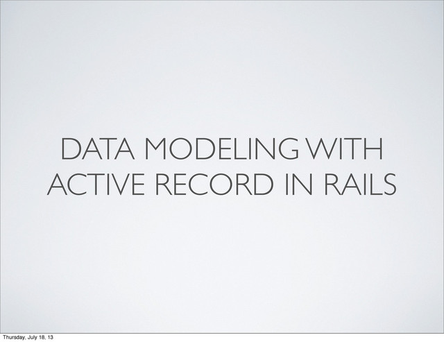 In this workshop we will learn the basics of how data is modeled in a relational database, and how to interact with the database through Activerecord. We'll work on a simple app to keep track of a music catalog and use this example to introduce concepts like relationships, queries, and migrations. By the end, you'll have a working understanding of how to build data models to power your own apps.