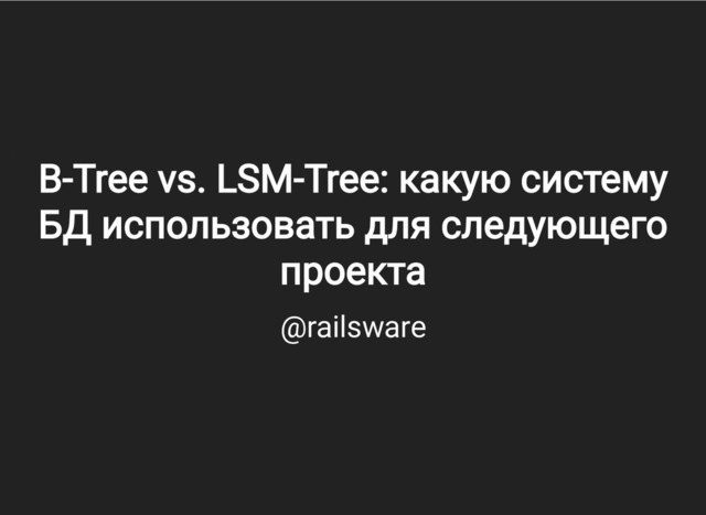какую какую систему систему B-Tree vs. LSM-Tree: B-Tree vs. LSM-Tree: какую какую систему систему БД БД использовать использовать для для следующего следующего БД БД использовать использовать для для следующего следующего проекта проекта проекта проекта @railsware