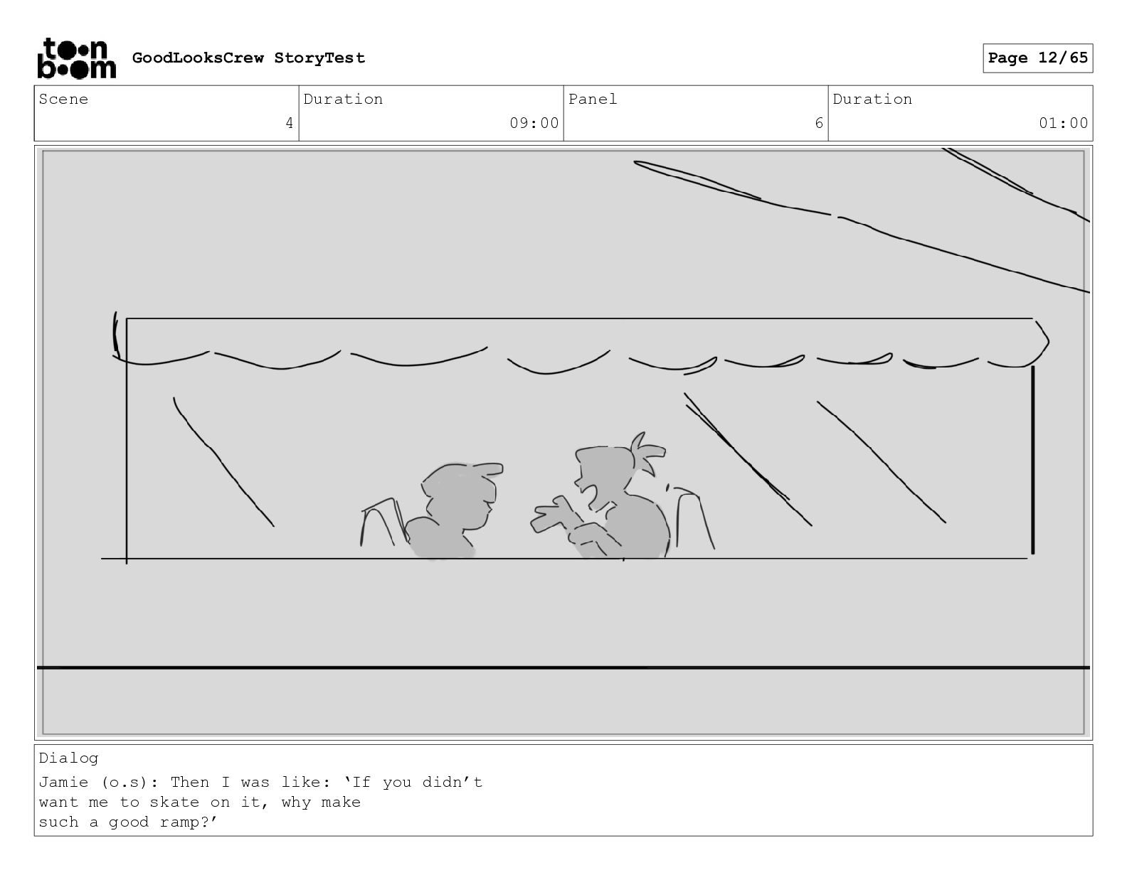 Scene 12 Duration 19:00 Panel 6 Duration 01:00 GoodLooksCrew StoryTest