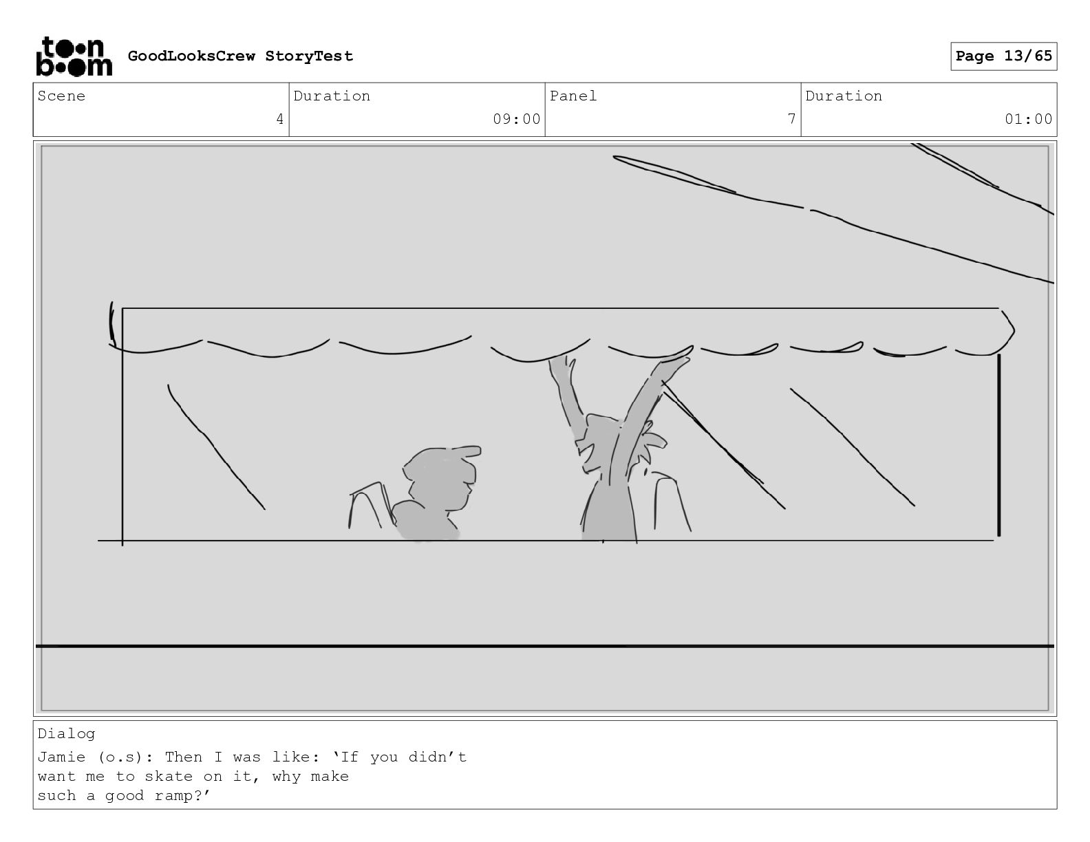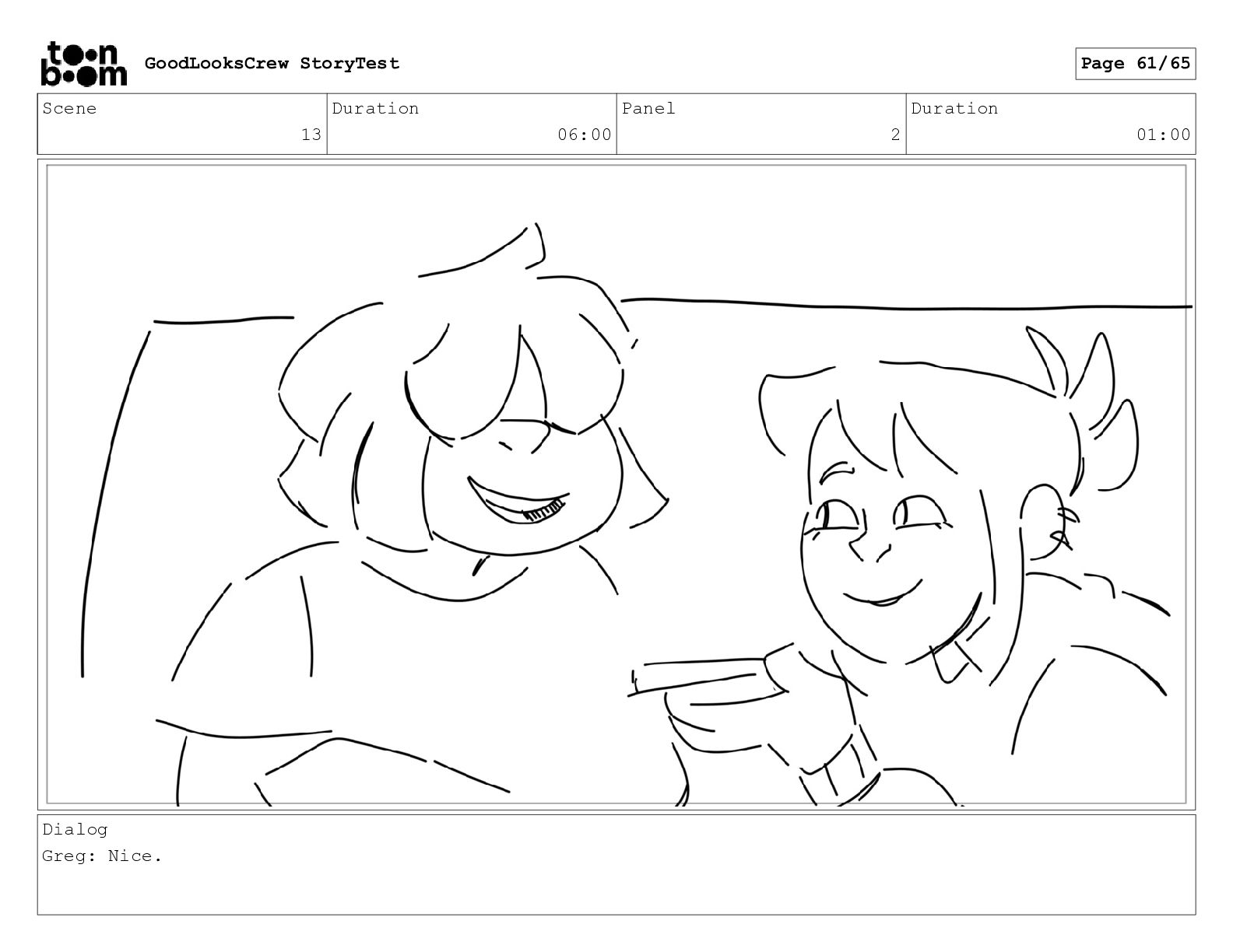 Scene 12 Duration 19:00 Panel 13 Duration 01:00 GoodLooksCrew StoryTest